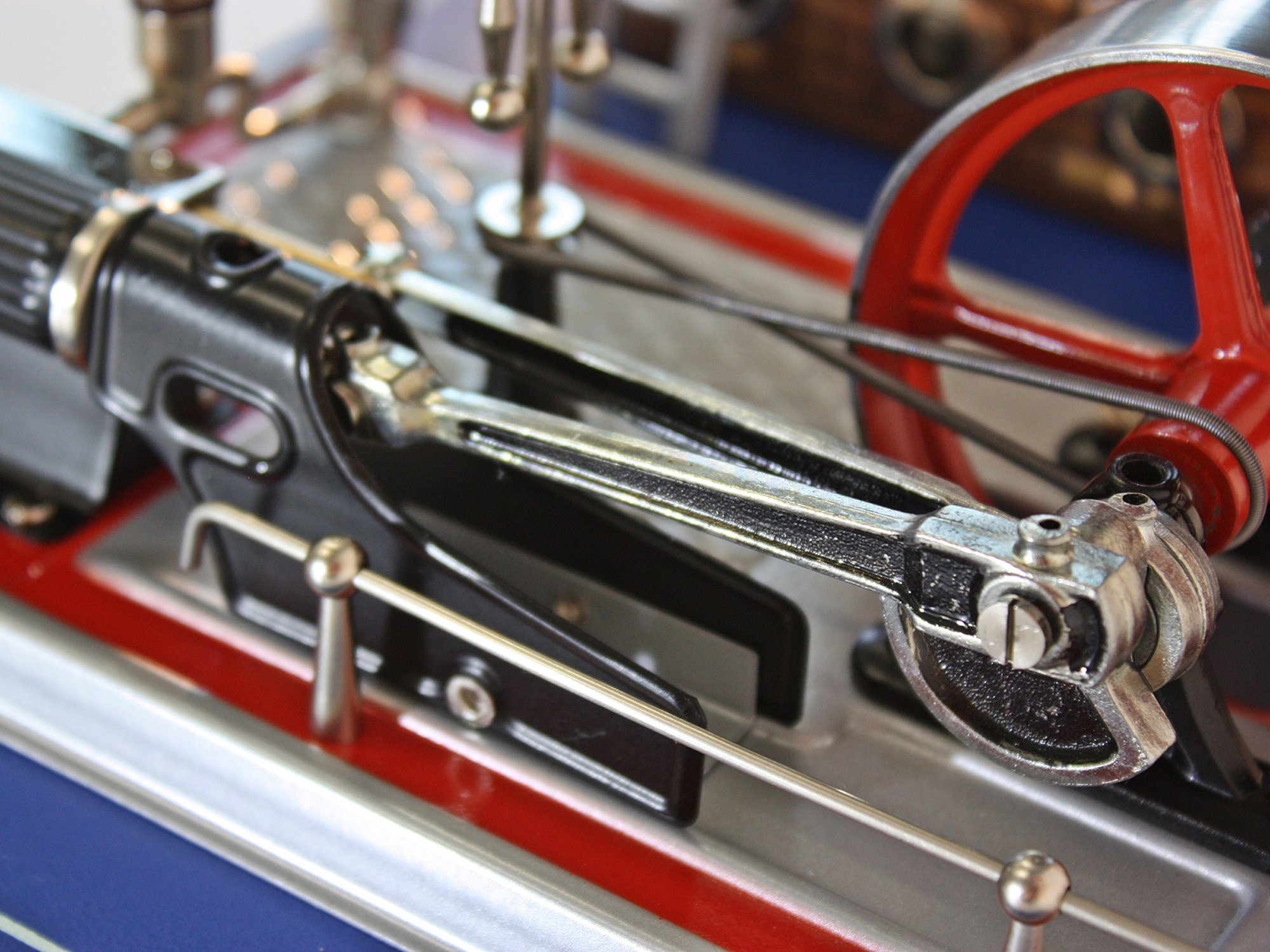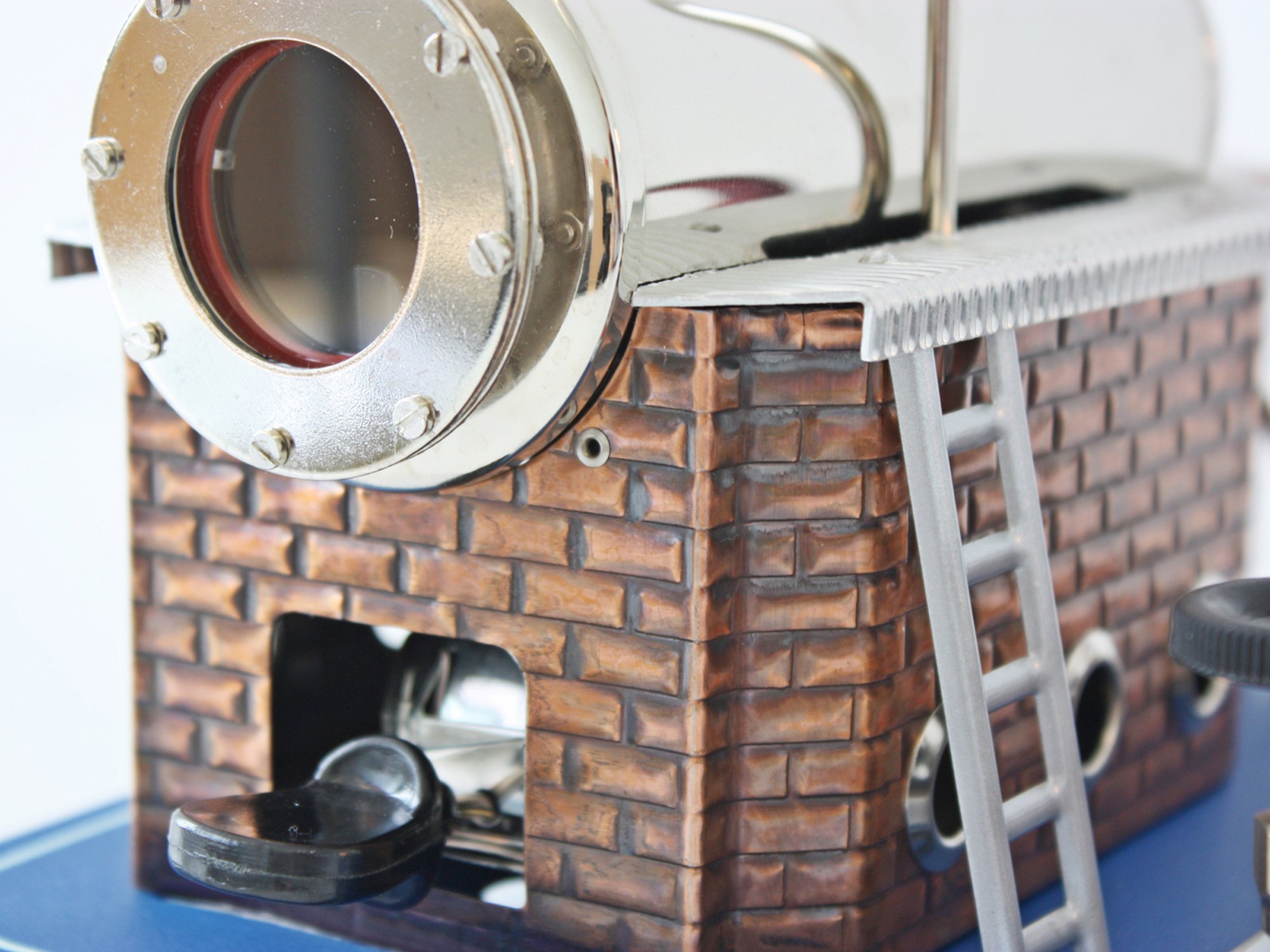 Le cylindre fixe en laiton à double effet de ce modèle réduit de machine à vapeur est équipé d'un volant d'inertie pouvant être actionné dans les deux sens de rotation. La D16 est également équipée d'une soupape de sécurité à ressort.
