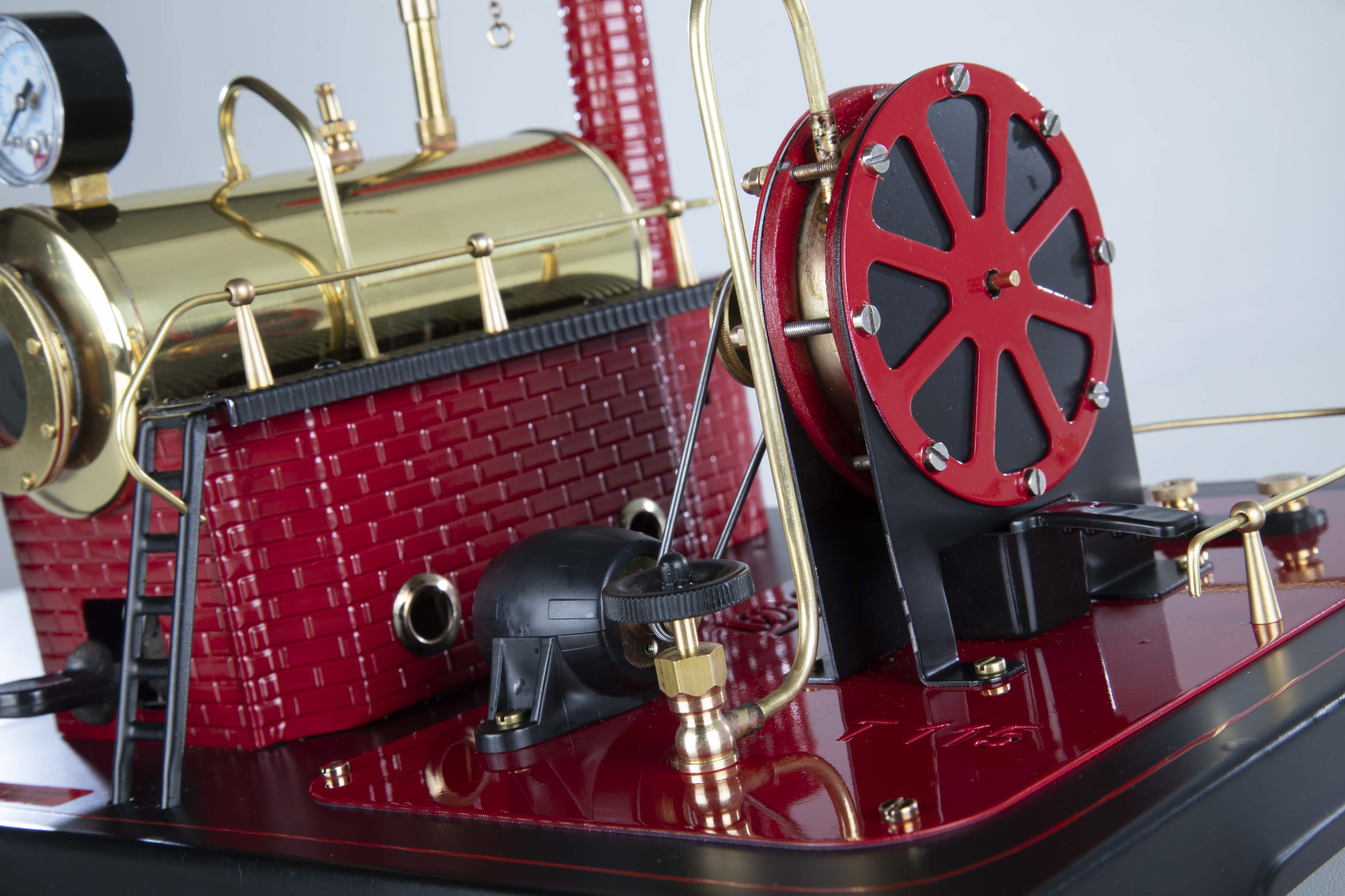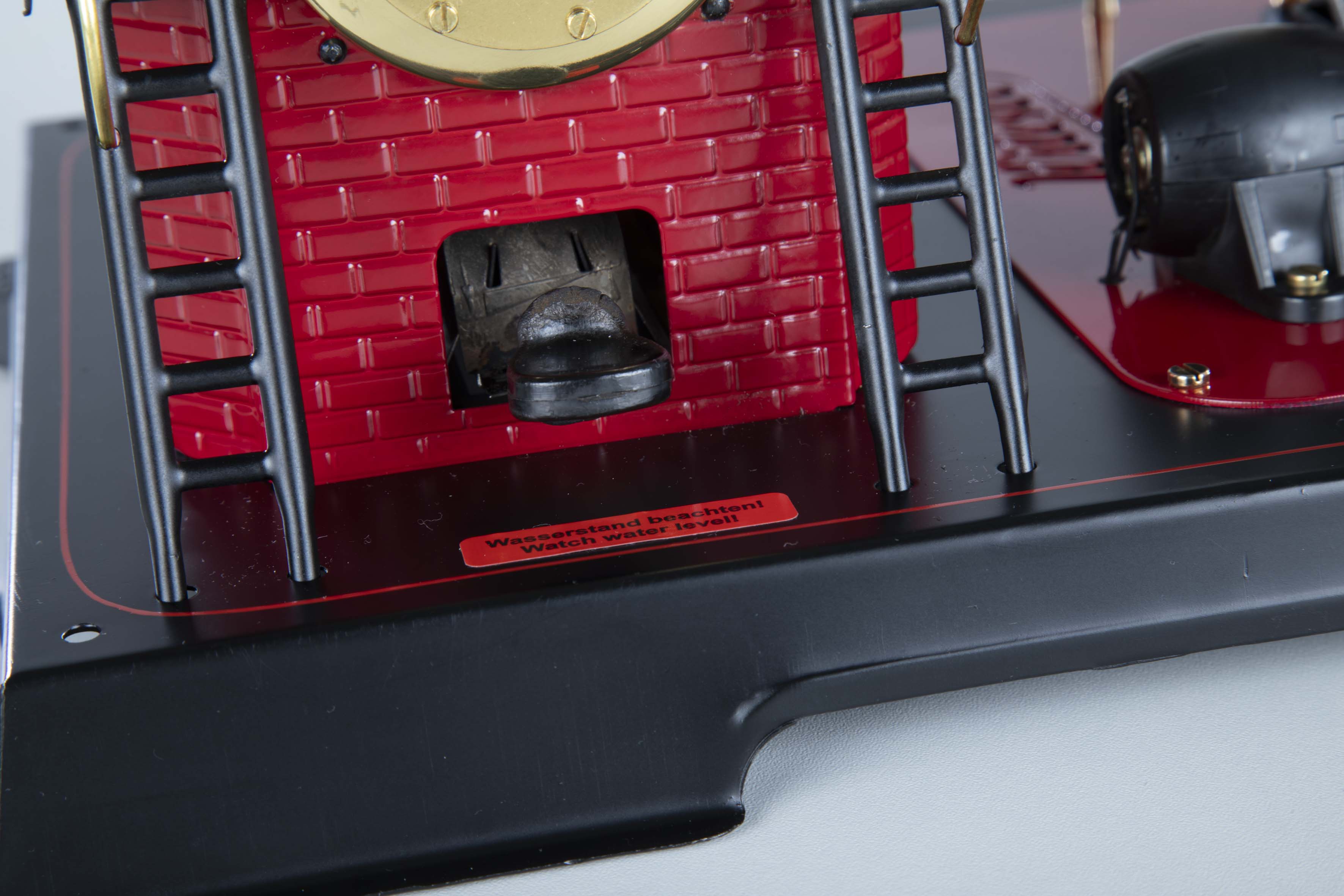 Die neue Modellturbine T115 von Wilesco ist ein echter Hingucker! Die Eigenkonstruktion besteht aus einer schwarzen Grundplatte, einem rotem Kesselhaus und einem messingpolierten Kessel. Diese Kombination sorgt für eine atemberaubende Optik, die jede Sammlung bereichern wird. Aber die T115 ist nicht nur eine Augenweide, sie bietet auch beeindruckende Leistungen. Der Kessel ist mit besonderen Hitzeblechen ausgestattet, die eine schnellere Dampfproduktion ermöglichen. Der Dampf kann über das Dampfabsperrventil geregelt werden, was eine präzise Steuerung ermöglicht. Dank der Leistung der T115, reicht diese aus, um den Dynamo zu betreiben. Das bedeutet, dass Sie die T115 nicht nur als Modell betreiben, sondern auch als funktionsfähige Dampfmaschine verwenden können. Erleben Sie die Faszination der Technik mit der neuen Modellturbine T115 von Wilesco. Bestellen Sie jetzt und fügen Sie eine einzigartige und leistungsstarke Dampfmaschine zu Ihrer Sammlung hinzu.