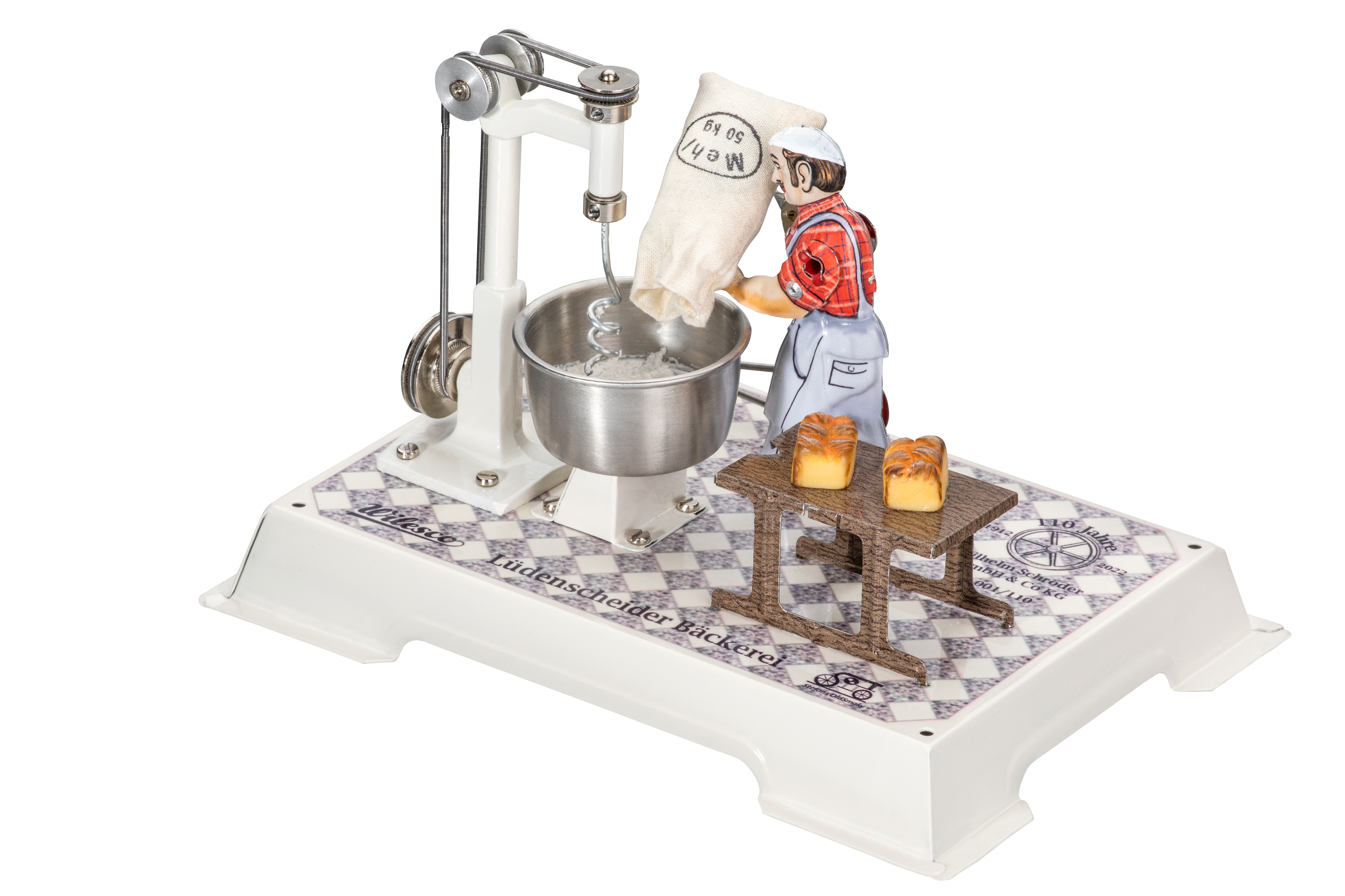 The popular Wilesco craftman series is being expanded to include the baking trade. We present the hardworking baker in his bakery, tirelessly filling the dough mixer to knead the bread dough. To celebrate 110 years of the company, only 110 pieces will be produced as a special edition in this unique color scheme. After that, this model will be available as a regular model in a different color variant.