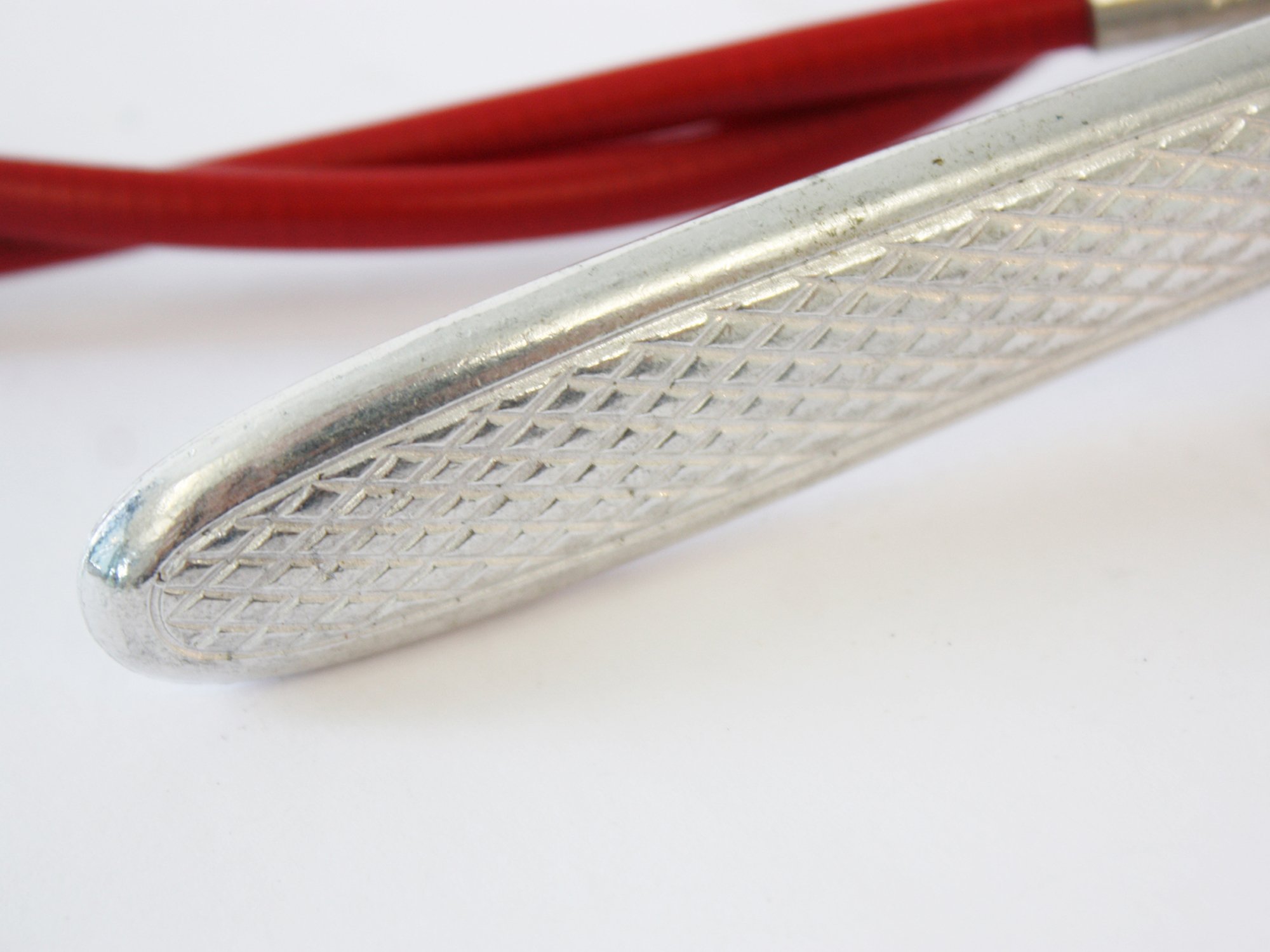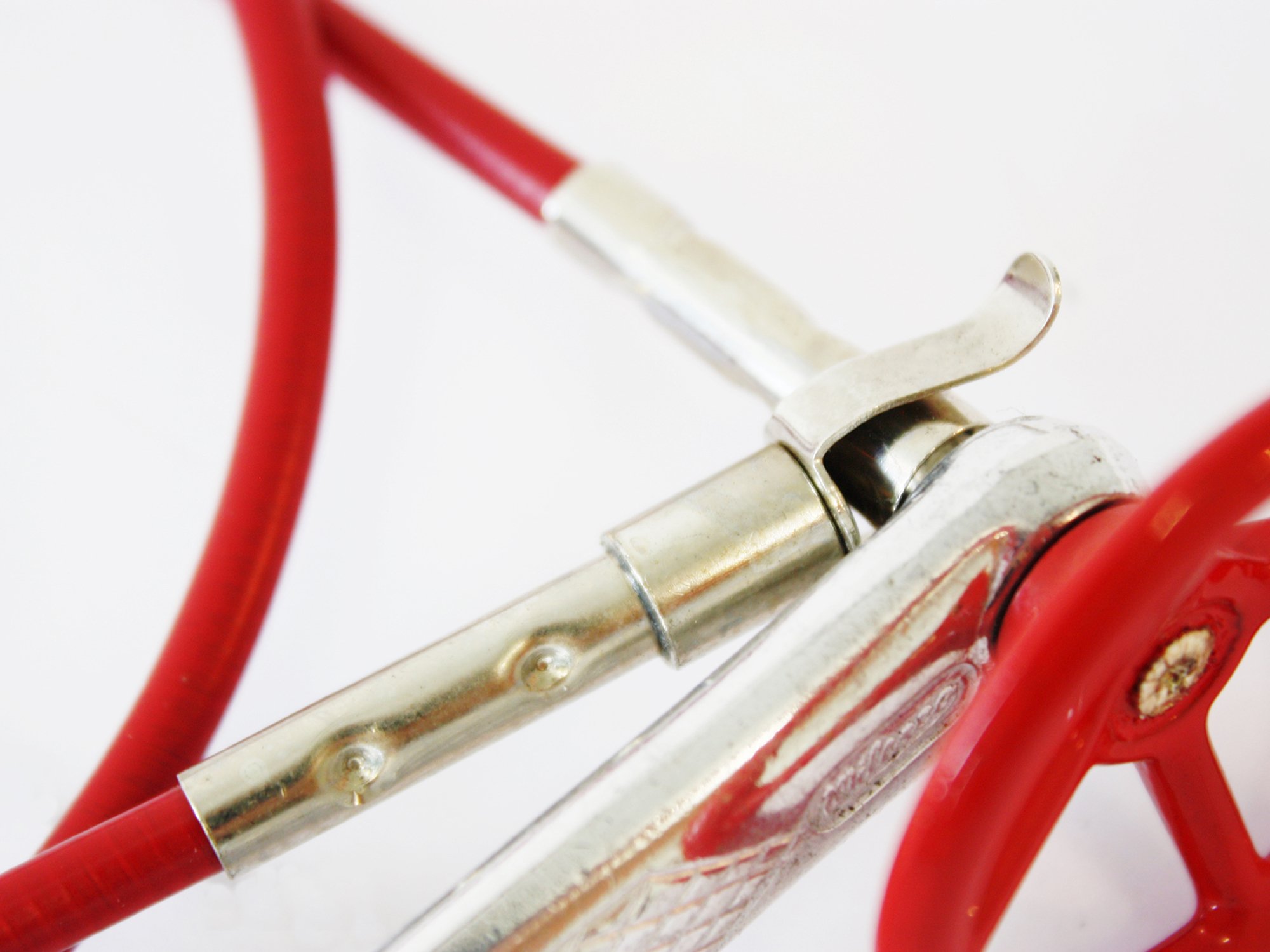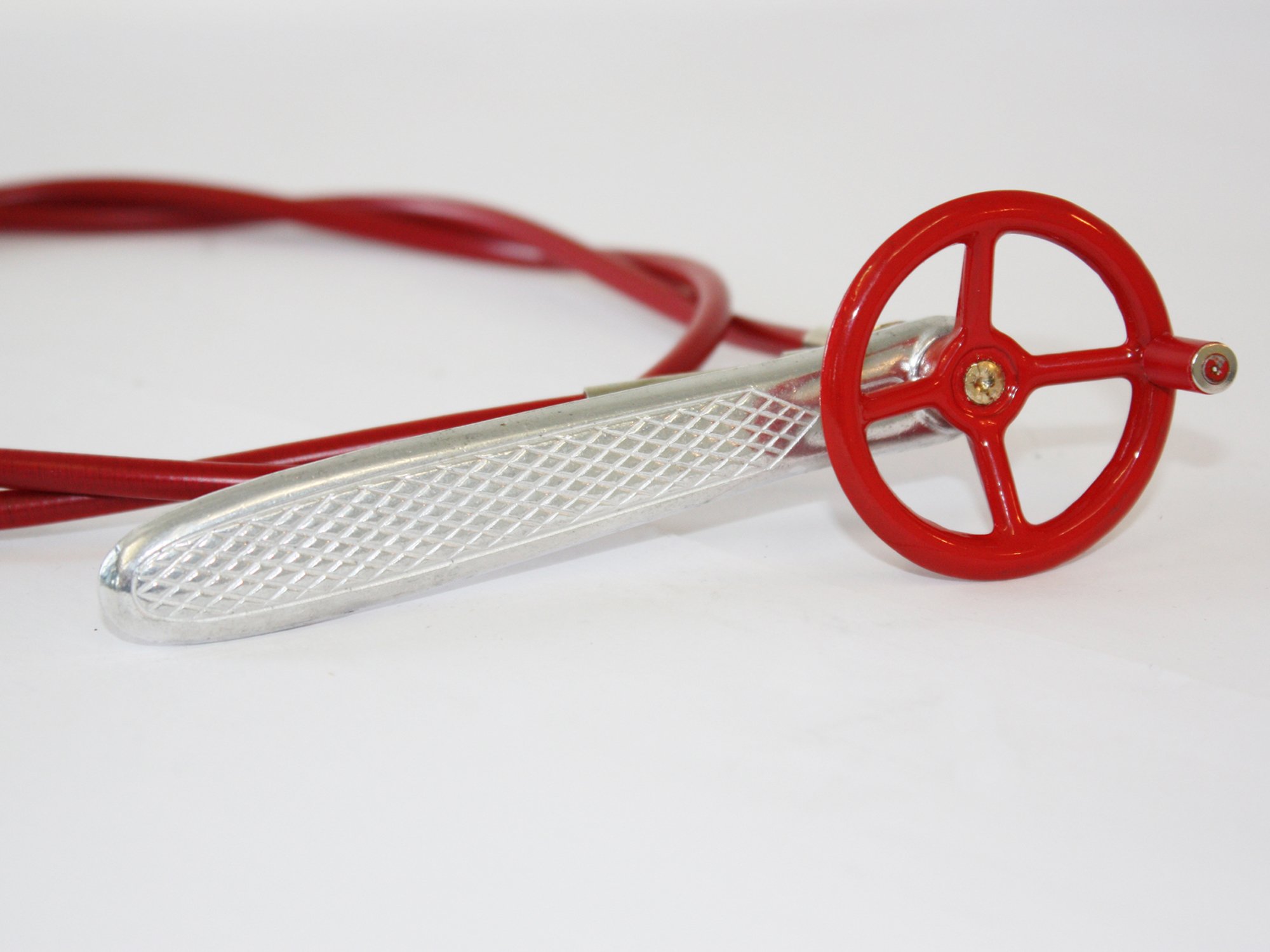 Une poignée métallique maniable et un tirage au sol stable assurent une utilisation facile. La commande se fixe au moyen d'un ressort sur la roue de commande du rouleau compresseur à vapeur ou du tracteur à vapeur.