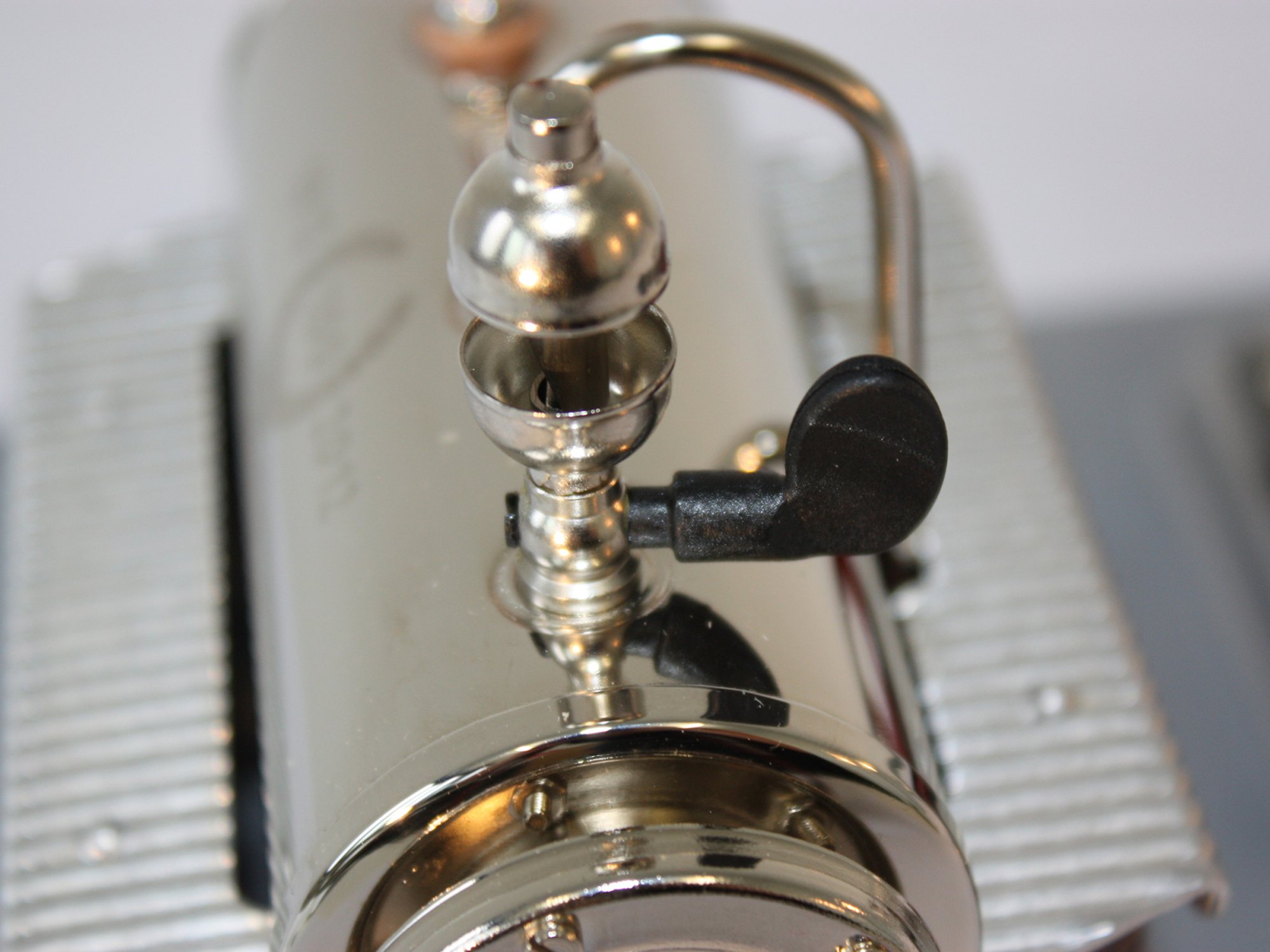 D10/100 100 ans de vapeur avec Wilesco! Wilesco existe depuis 100 ans et c'est une belle occasion de présenter une machine à vapeur qui le montre. Ce modèle a une gravure laser sur le réservoir qui résiste également à la mise en feu de la machine. La boîte en bois clair de la machine reçoit également une gravure personnelle pour le jubilé de l'entreprise.