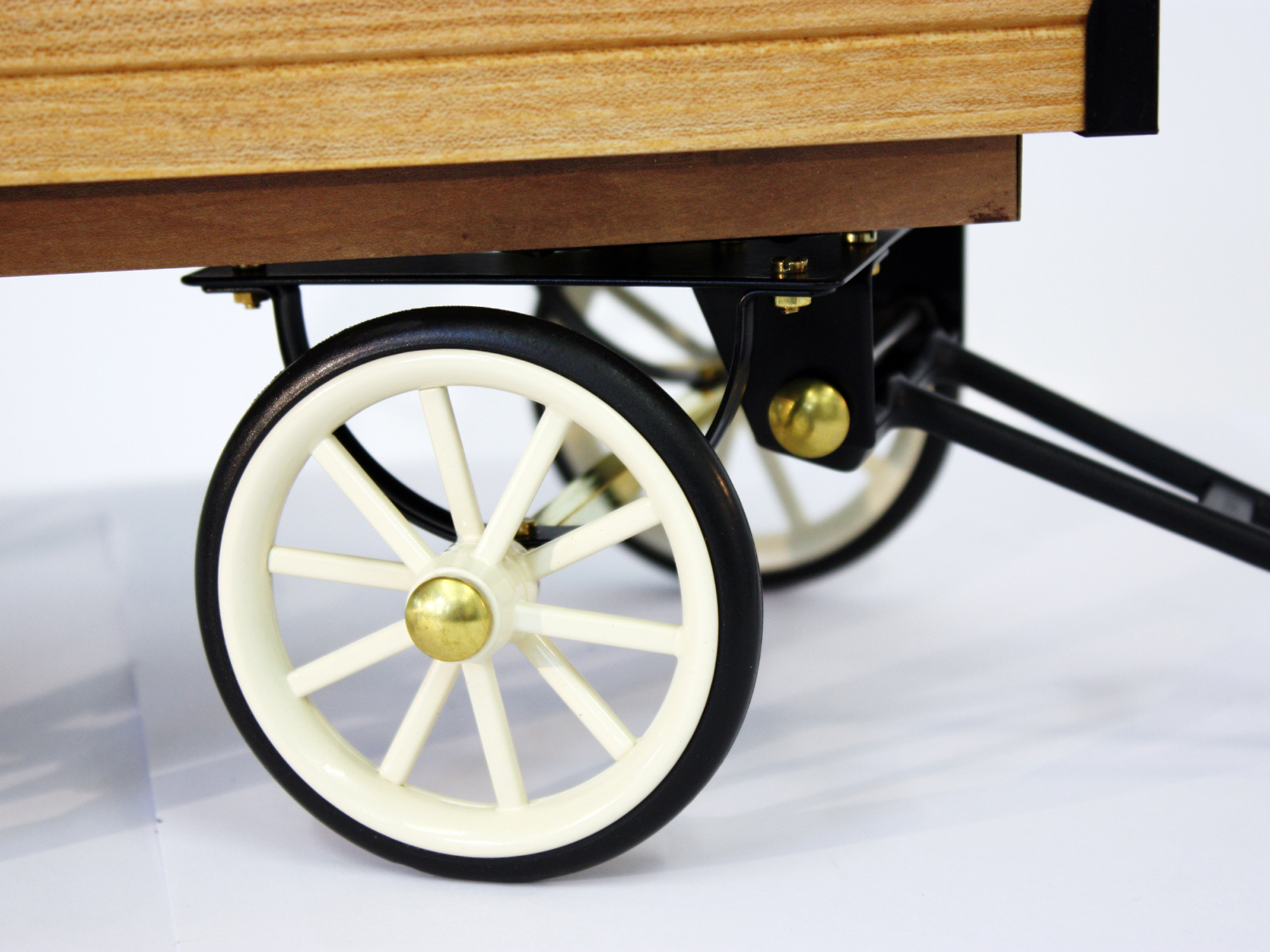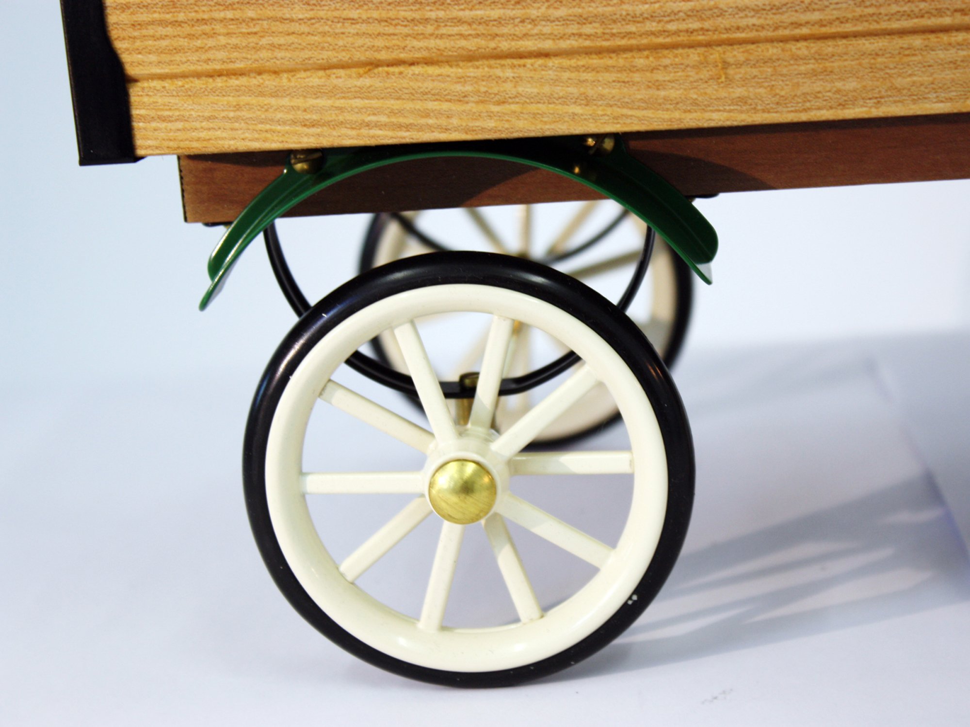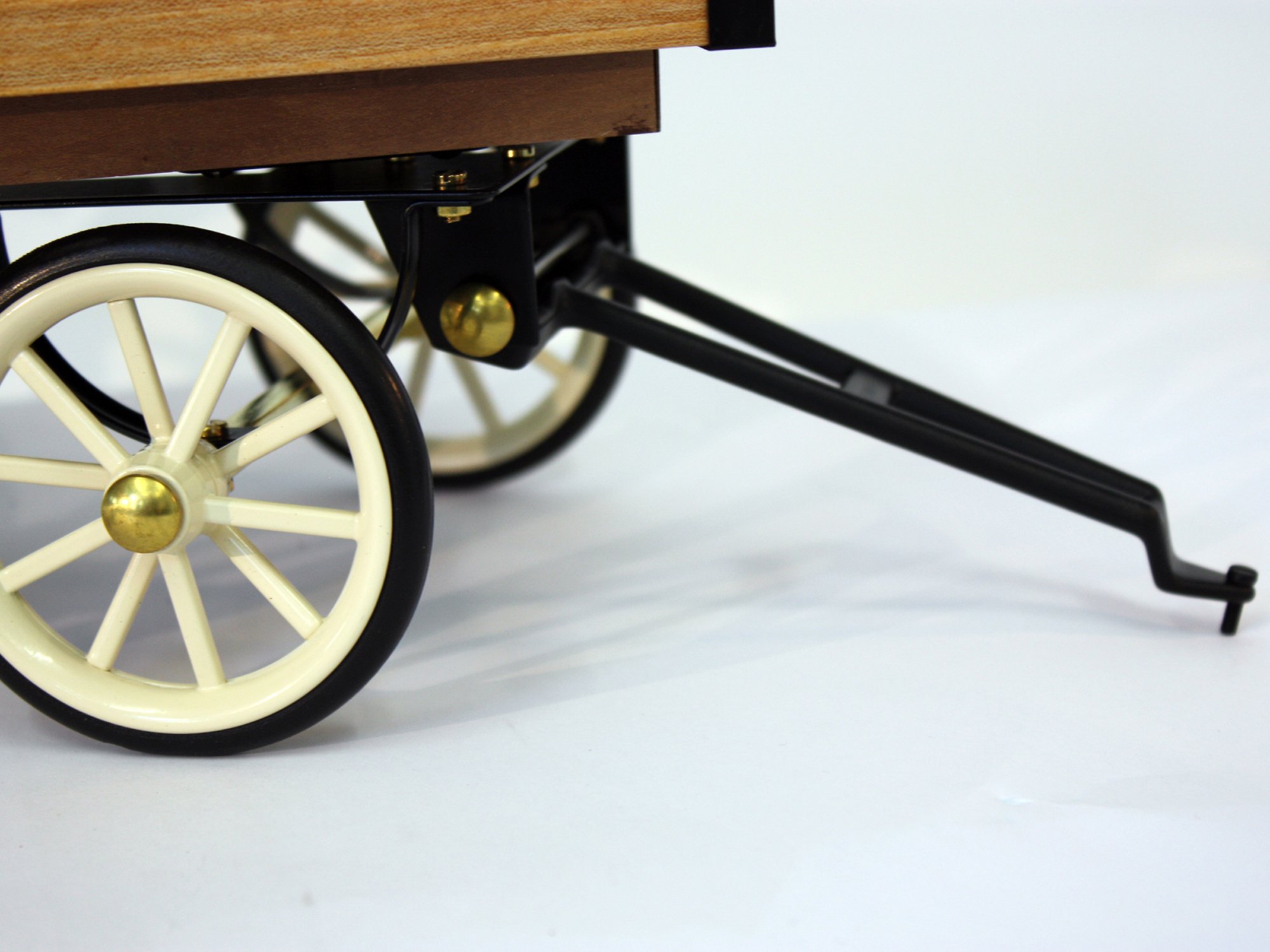Der A325 Anhänger ist mit einer Pritsche ausgestattet, die sich leicht beladen und entladen lässt. Zudem verfügt er über eine stabile Deichsel, die für zusätzliche Stabilität sorgt. Insgesamt ist der A325 Anhänger eine praktische Ergänzung für den D320 Dampflastwagen, die dessen Transportkapazität erheblich erweitert und die Arbeit erleichtert.