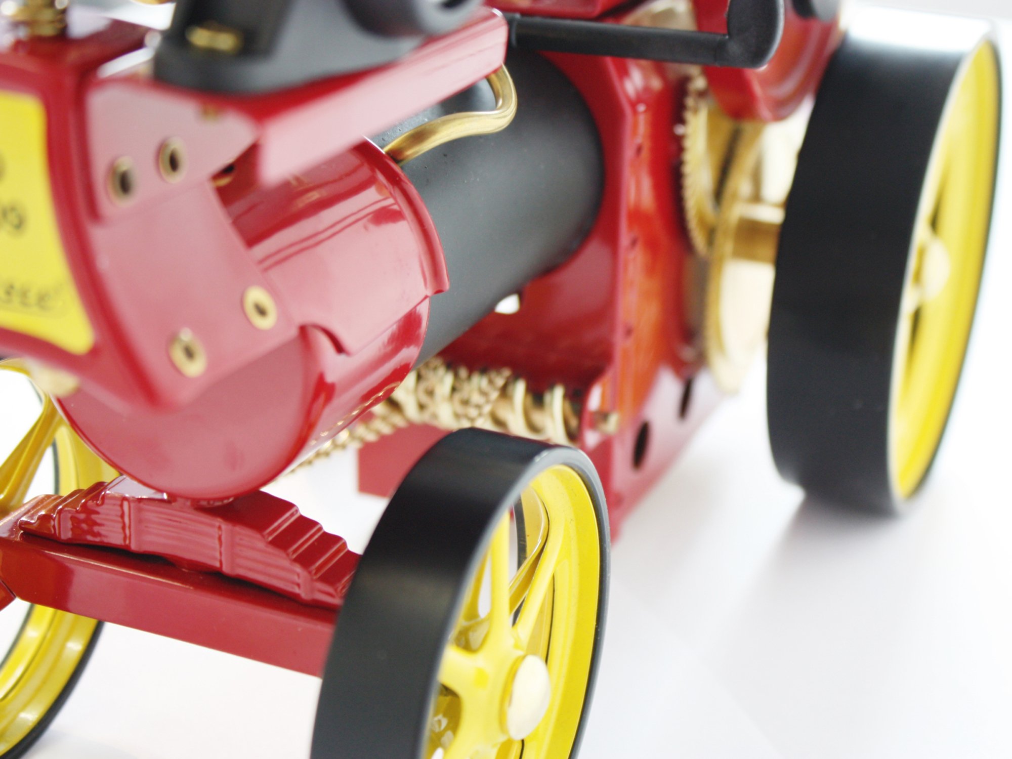 Die Wilesco Showman's Engine war zu Beginn des 20. Jahrhunderts ein häufiger Anblick auf Jahrmärkten und Kirmessen. Sie wurde verwendet, um die Karussells der Schausteller anzutreiben und den Kirmesplatz zu beleuchten. Diese Oldtimer-Maschinen waren farbenfroh dekoriert und mit einem Dynamo ausgestattet, um Strom für die Beleuchtung zu erzeugen. Das Modell wird mit Trockenbrennstofftabletten betrieben.